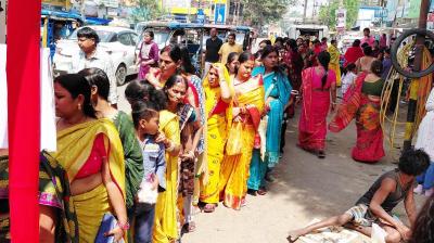 महावीर मंदिर में उमड़ी भीड़, 1200 मीटर लंबी कतार