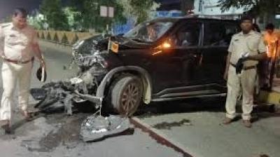 पटना में हाईवा ने पुलिस गाड़ी को मारी टक्कर, रेलिंग से टकराकर लगी आग